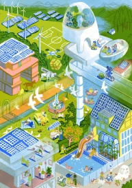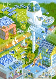retrofuturist aesthetic, echoing the spirit of classic future-themed illustrations.