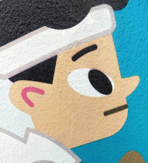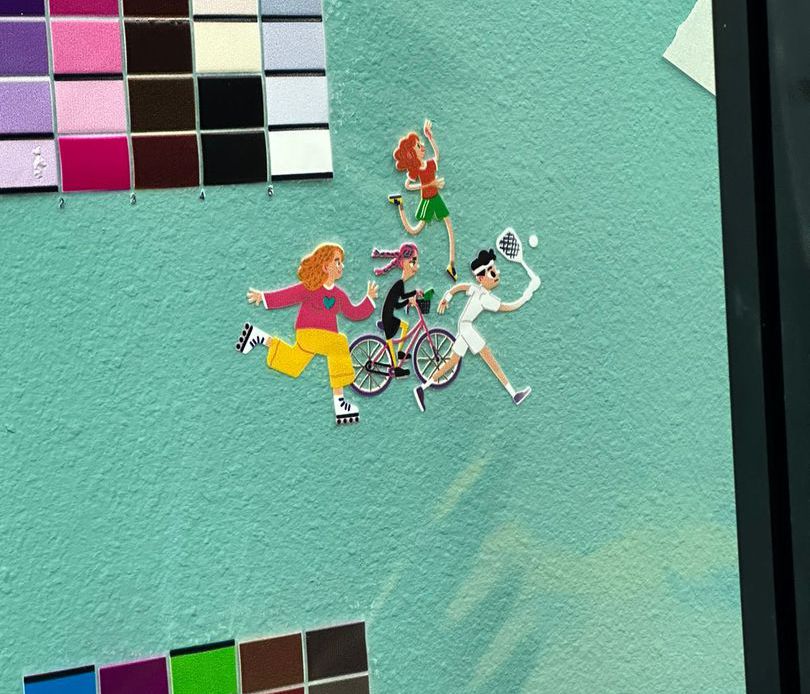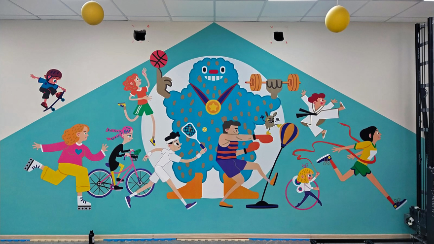 The first mural — and my personal favorite — introduces the main characters through dynamic sports roles.