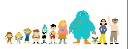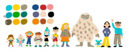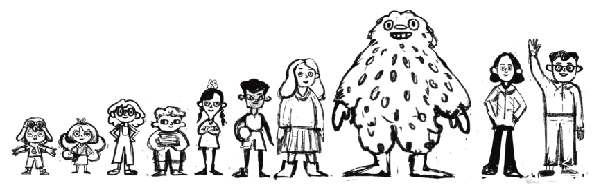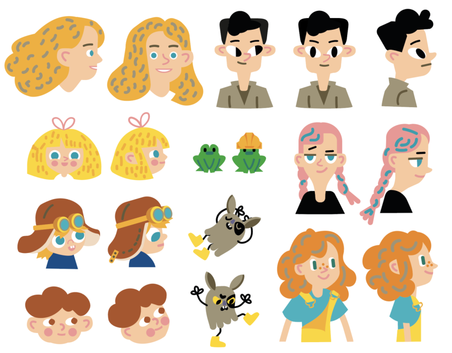 II designed 10 (+1*) characters: 3 pairs of kids (targeted to primary, middle, and high school age accordingly), and 4 “supportive adults” (mother-like character, a couple of young scientists, and a nice monster). And a frog! Because frogs are cool.