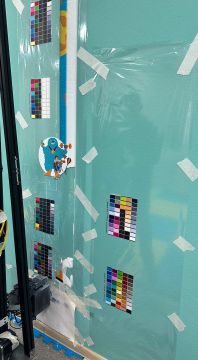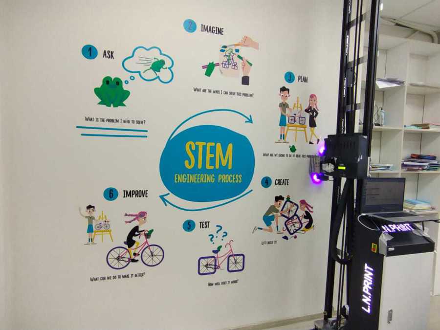 We used vertical wall printers — a first for me — which required converting vector-based designs into a compatible format.