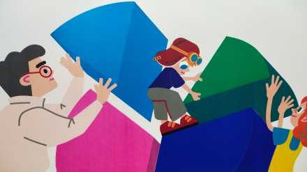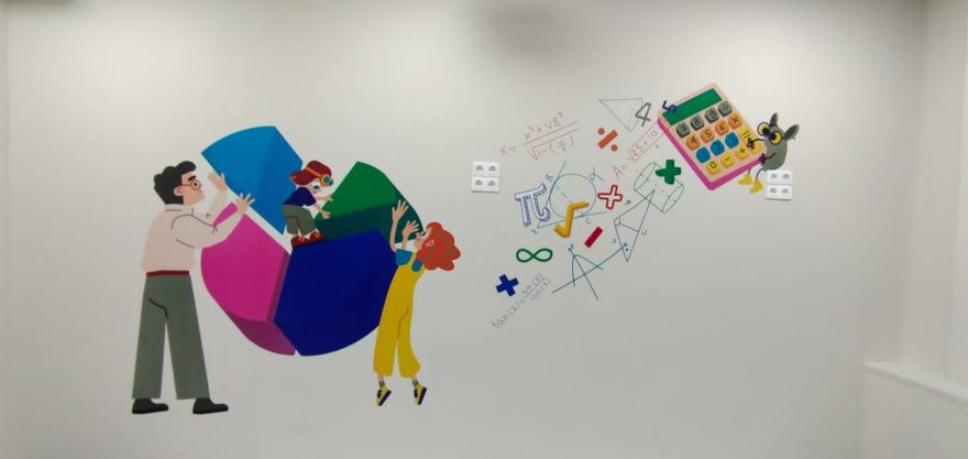 Set around physical plug sockets, this mural features the Trickster character using the plug as a seat. Not everyone likes math, but almost everyone likes a pie! (chart that is)