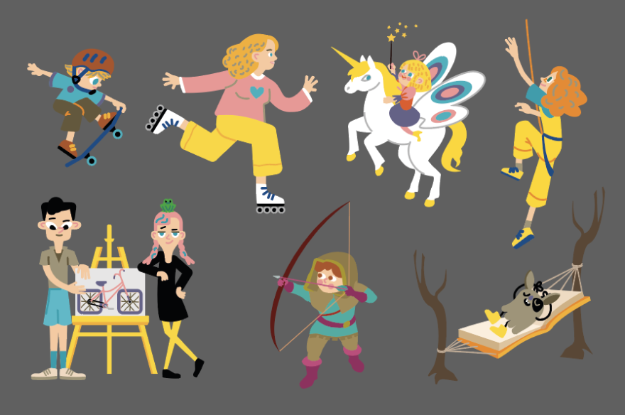 I didn't have much time to spare on designing the characters, so I wanted them to be easy enough for future developing, and useful in the long run - for the website, apps and merch. I went for nice simple shapes, yet keeping away from corporate vector style.