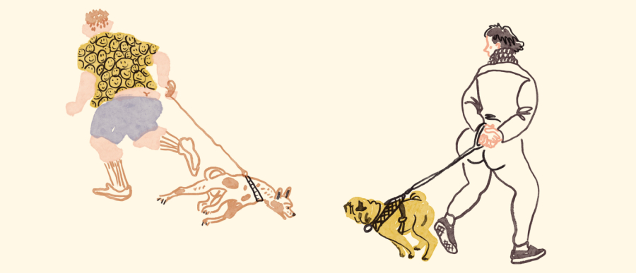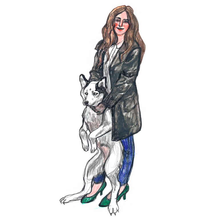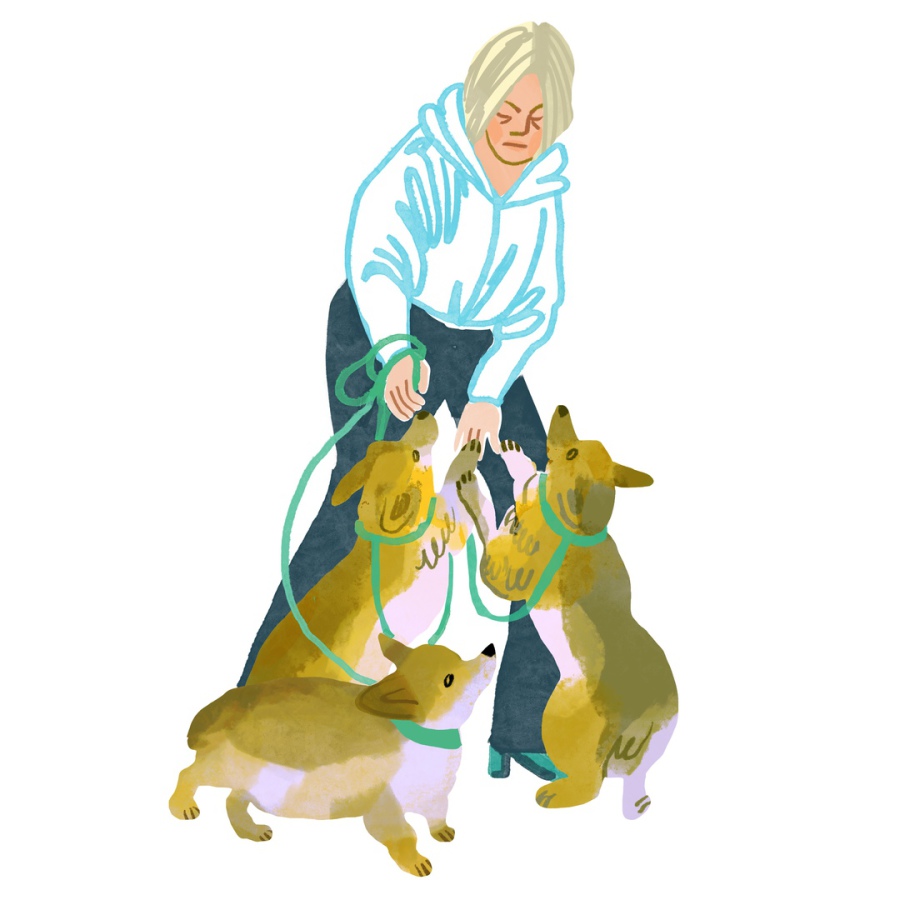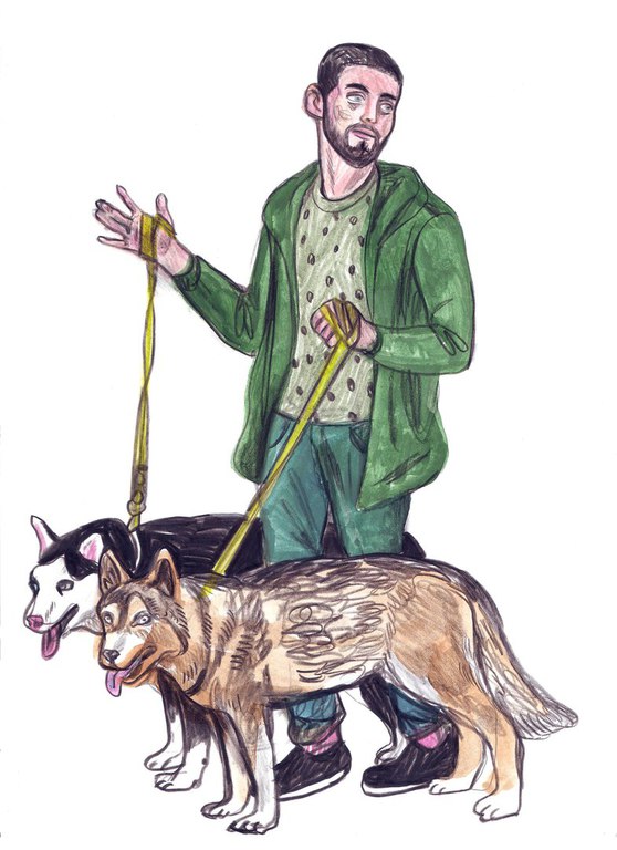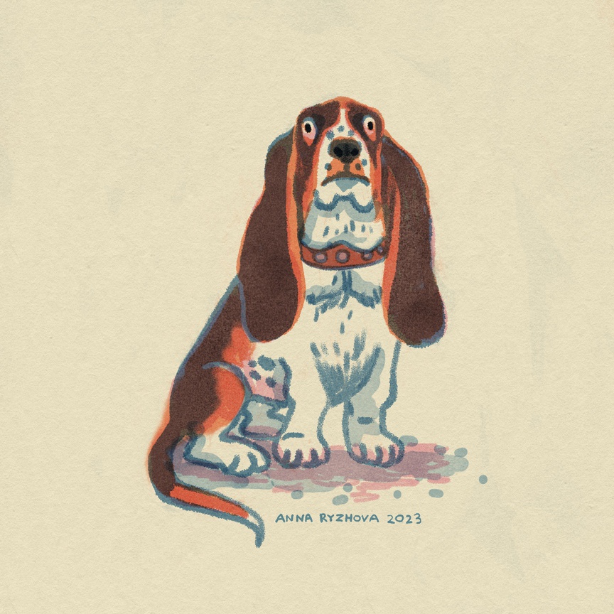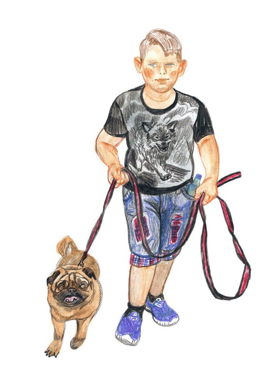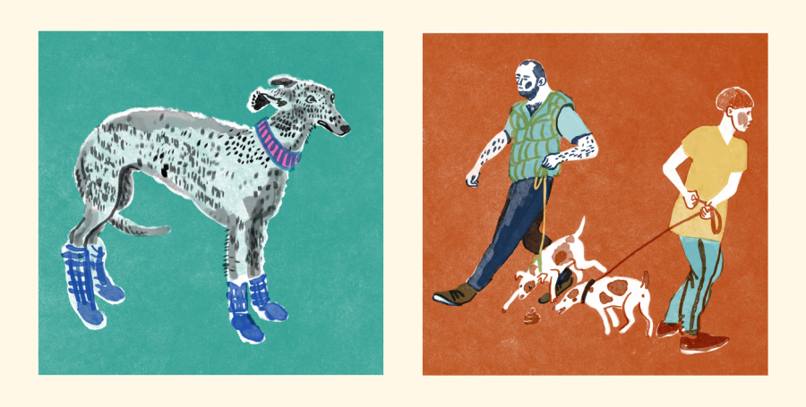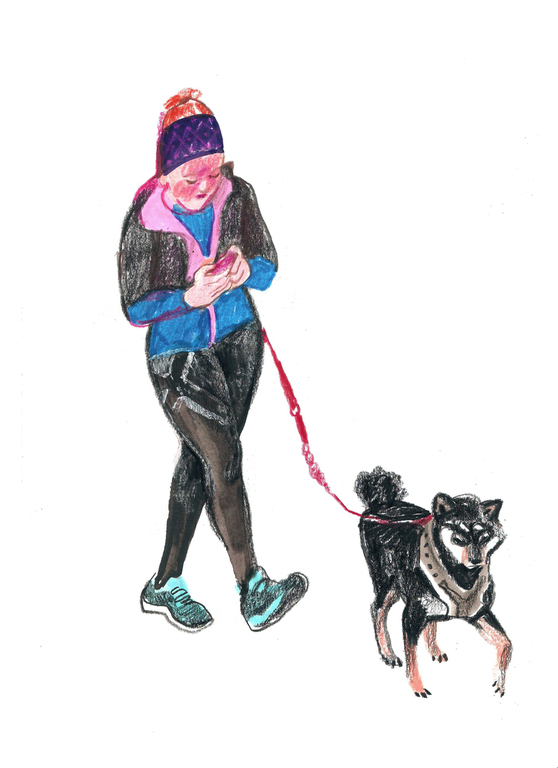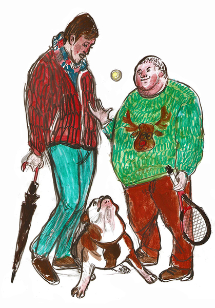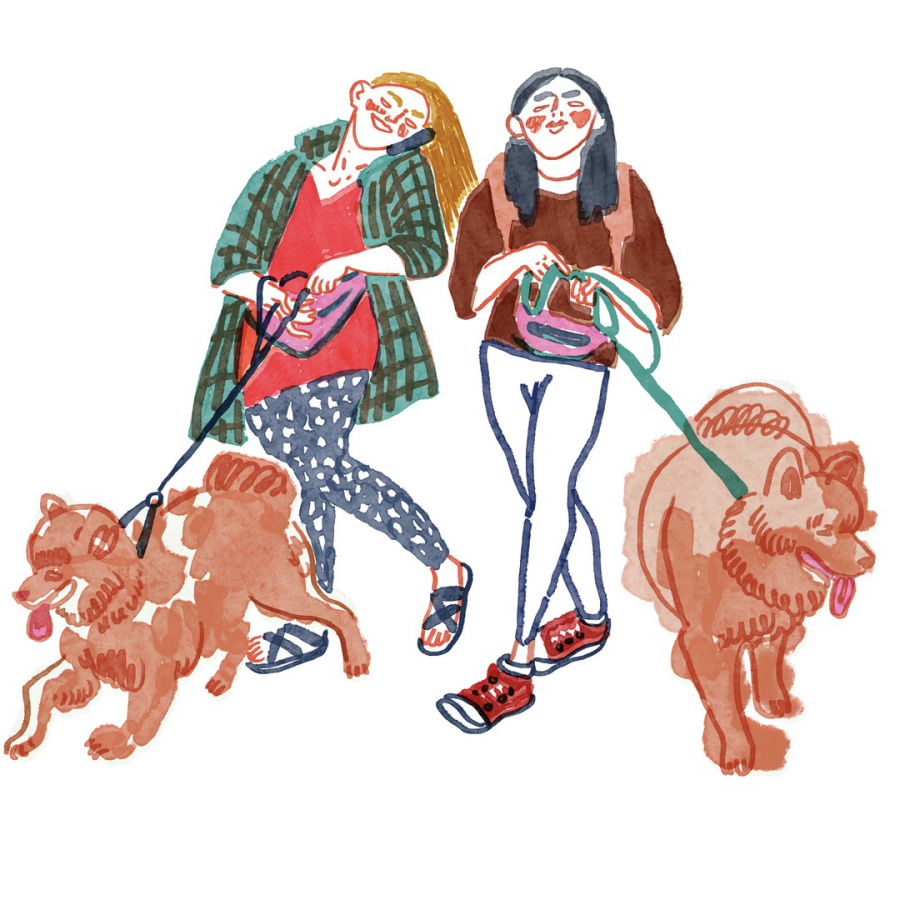 When I want to experiment with new techniques and materials I go back to DOG PEOPLE and try new approaches on old sketches. I find this theme ever-inspiring for the endless variety of different shapes and sizes of the dogs and their owners.